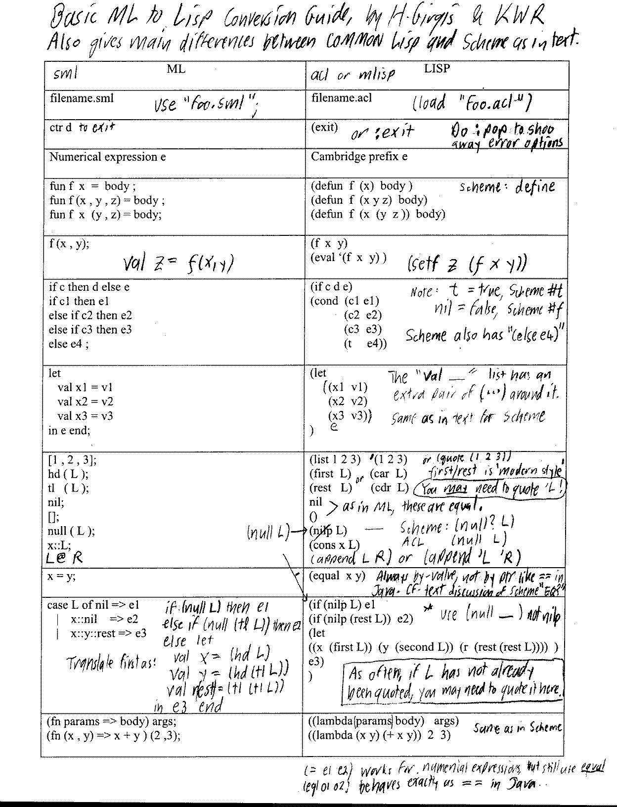 ML. ML BNF and Reference Sheet, given