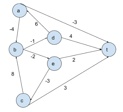 Find the minimum distances to a terminal $t$ in a directed graph $G=(V,E)$ with negative edge costs $c_e$, $e\in E$ (but no negative cycles).