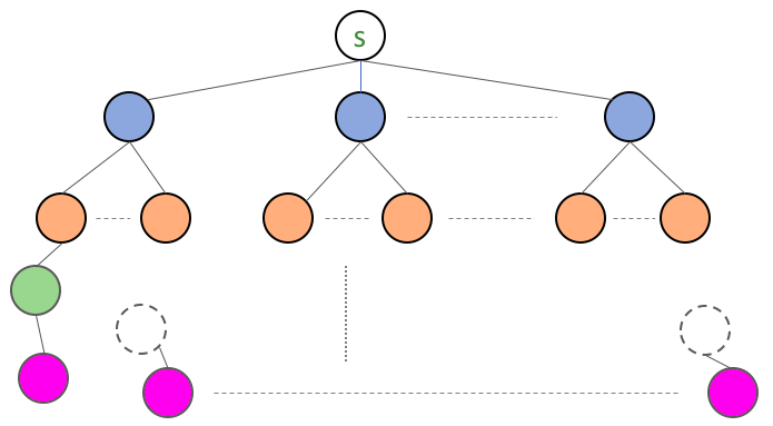 Now let us try to modify the algorithm above to work for the following more general case (basically a tree of depth 2):
