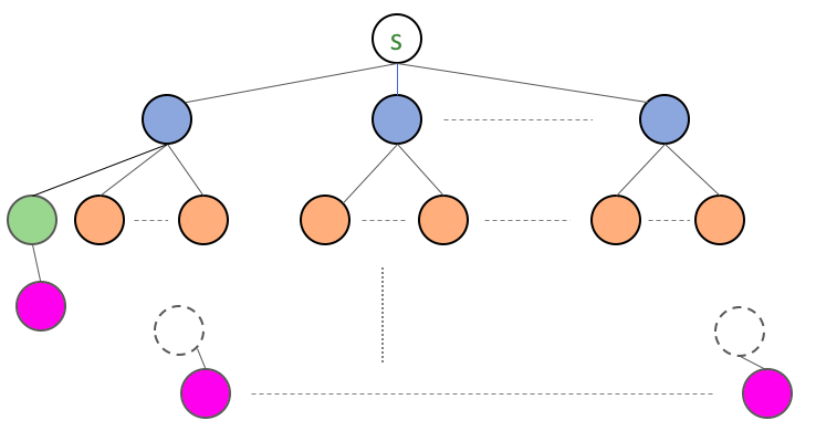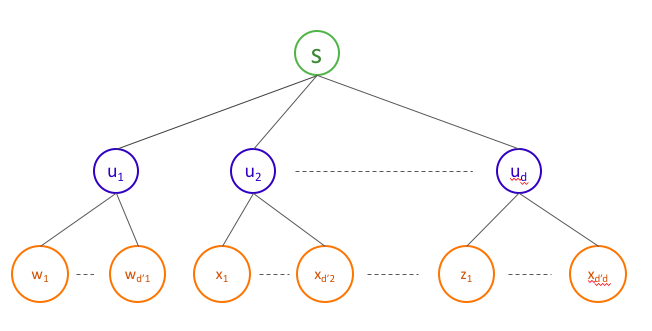 Now let us try to modify the algorithm above to work for the following more general case (basically a tree of depth 2):