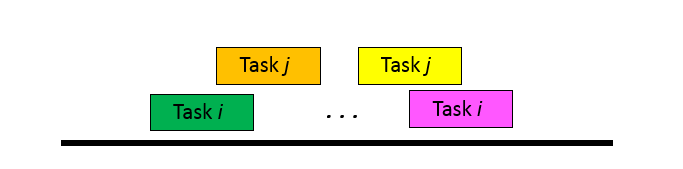 In this case, the output solution set is the same as the input solution set since neither Tasks conflict with each other. So we have [Task 1, Task 2].