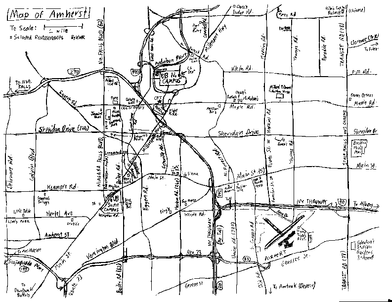 NEW: Map of Amherst , showing major streets. Drawn by KWR. Hardcopies will be in registration packets. Bigger, better-resolution version.